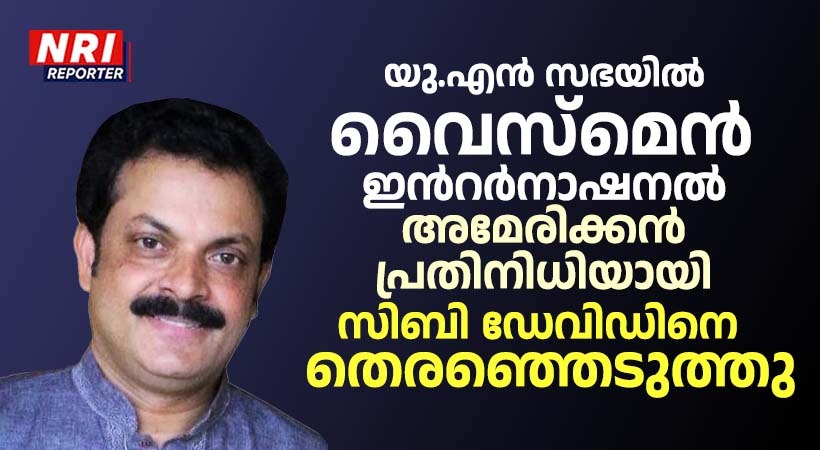 ന്യൂയോർക്ക്: ഐക്യരാഷ്ട്ര സഭയുടെ പ്രത്യേക ഫോറത്തിലേക്ക് അമേരിക്കയിലെ വൈസ്മെൻ ഇന്റർനാഷണൽ ക്ലബ്ബിനെ (Y’s Men International Club) 2026-ൽ പ്രതിനിധീകരിക്കുന്നതിനായി ന്യൂയോർക്കിൽ നിന്നും മലയാളിയായ തോമസ് ഡേവിഡ് (സിബി ഡേവിഡ്) തെരഞ്ഞെടുത്തു. ലോകമെമ്പാടുമുള്ള വിവിധ ഇന്റർനാഷണൽ സാമൂഹിക സേവന സംഘടനകളിൽ നിന്നുള്ള പ്രതിനിധികളാണ് പ്രസ്തുത ഫോറത്തിൽ പ്രവർത്തിക്കുന്നത്. ന്യൂയോർക്ക് ലോങ്ങ് ഐലൻഡ് വൈസ്മെൻ ഇന്റർനാഷണൽ ക്ലബ് (Long Island Y’s Men International Club) അംഗമായ സിബി ഡേവിഡ് മലയാളികളുടെ ഇടയിൽ അറിയപ്പെടുന്ന കലാസ്നേഹിയാണ്.