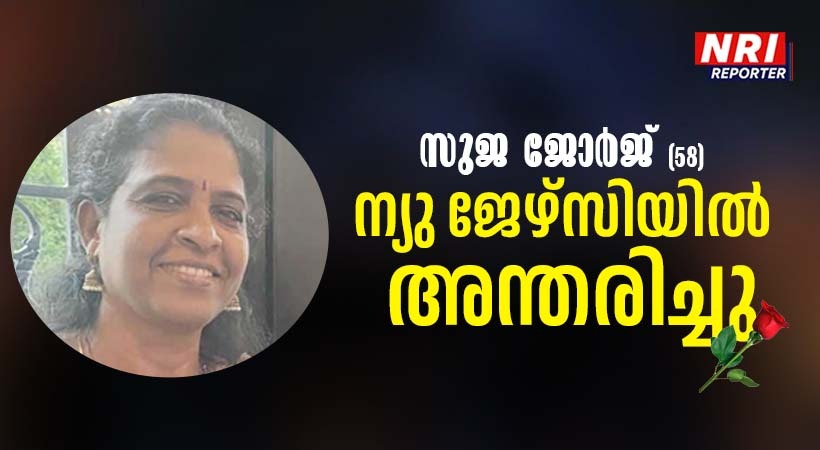 ന്യു ജേഴ്സി: ഇന്ത്യാ പ്രസ് ക്ലബ് ഓഫ് നോർത്ത് അമേരിക്ക, കേരളാ അസോസിയേഷൻ ഓഫ് ന്യു ജേഴ്സി എന്നിവയുടെ മുൻ പ്രസിഡന്റും സംഗമം, എമേർജിംഗ് കേരള യു.എസ്.എ എന്നിവയുടെ ചീഫ് എഡിറ്ററുമായിരുന്ന റെജി ജോർജിൻ്റെ ഭാര്യ സുജ ജോർജ് (58) അന്തരിച്ചു. ഏതാനും നാളായി ചികിത്സയിലായിരുന്നു.