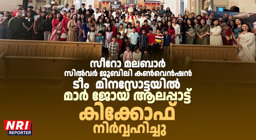 ഷിക്കാഗോ: ഇന്ത്യയ്ക്ക് പുറത്ത് സീറോ മലബാർ സഭയ്ക്ക് ആദ്യമായി ലഭിച്ച രൂപതയായ ഷിക്കാഗോ സീറോ മലബാർ രൂപതയുടെ രൂപീകരണത്തിന് 25 വർഷം പൂർത്തിയാകുന്ന ഈ ചരിത്രമൂല്യമേറിയ അവസരത്തിൽ ജൂബിലി ആഘോഷങ്ങളുടെ പരിസമാപ്തിയായി സംഘടിപ്പിക്കുന്ന മഹത്തായ സിൽവർ ജൂബിലി കൺവെൻഷന്റെ ഔദ്യോഗിക കിക്കോഫ് ഡിസംബർ 21-ന് മിനിയാപോളിസ്, മിനസോട്ടയിൽ സ്ഥിതിചെയ്യുന്ന സെന്റ് അൽഫോൻസാ സീറോ മലബാർ കാത്തലിക് പള്ളിയിൽ ആത്മീയ ഉണർവോടെയും ആഘോഷപൂർവ്വമായ അന്തരീക്ഷത്തോടെയും നടന്നു. രൂപതാധ്യക്ഷൻ മാർ ജോയ് ആലപ്പാട്ടിന്റെ നേതൃത്വത്തിലായിരുന്നു കിക്കോഫ് ചടങ്ങുകൾ.
