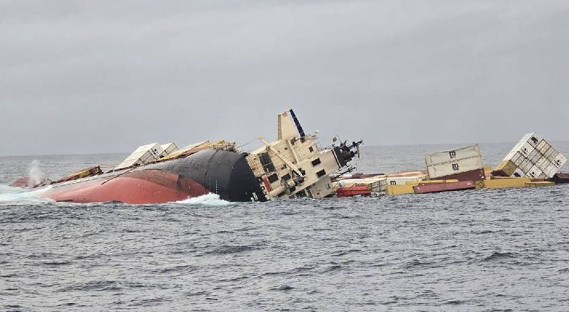 The cargo ship capsized in the Arabian Sea had sunk with its containers completely spilling into the sea