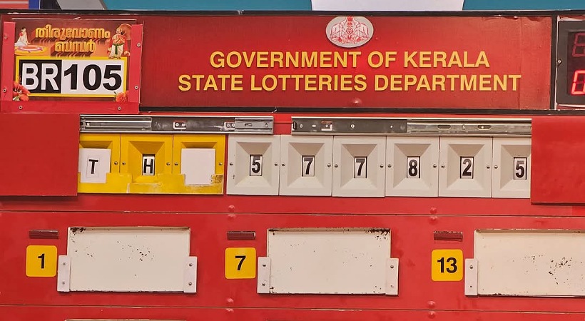 തിരുവനന്തപുരം: കേരള ഭാഗ്യക്കുറിയുടെ തിരുവോണം ബമ്പർ നറുക്കെടുപ്പിൽ ഒന്നാം സമ്മാനമായ 25 കോടി രൂപ ലഭിച്ചത് TH577825 എന്ന ടിക്കറ്റിന്. പാലക്കാട് വിറ്റ ടിക്കറ്റിനാണ് ഒന്നാം സമ്മാനം ലഭിച്ചിരിക്കുന്നതെന്നാണ് വിവരം. ഓണം ബമ്പറിൽ രണ്ടാം സമ്മാനമായി ഒരു കോടി രൂപ വീതം 20 പേർക്കും മൂന്നാം സമ്മാനമായി 50 ലക്ഷം വീതം 20 പേർക്കും നാലാം സമ്മാനമായി അഞ്ചുലക്ഷം വീതം 10 പരമ്പരകൾക്കും അഞ്ചാം സമ്മാനമായി രണ്ടു ലക്ഷം വീതം 10 പരമ്പരകൾക്കും നൽകും.