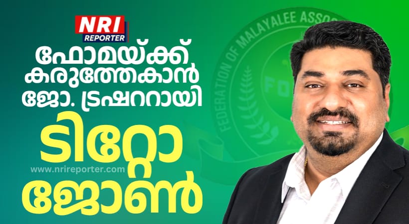 ഫ്ളോറിഡ: ഫോമ ഫ്ളോറിഡാ സണ്ഷൈന് റീജിയനില് നിന്നും യുവനേതാവ് ടിറ്റോ ജോണ് ഫോമാ ദേശീയ ജോ. ട്രഷററായി (2026-28) മത്സരിക്കുന്നു. മികച്ച നേതൃപാടവവും, സംഘാടക മികവും കൈമുതലായുള്ള ടിറ്റോ ജോണിന്റെ സ്ഥാനാര്ത്ഥിത്വം ഫോമാ നേതൃത്വം ക്രമേണ യുവതലമുറയിലേക്കു കൈമാറപ്പെടുന്നതിന്റെ വ്യക്തമായ തെളിവ് കൂടിയായി .