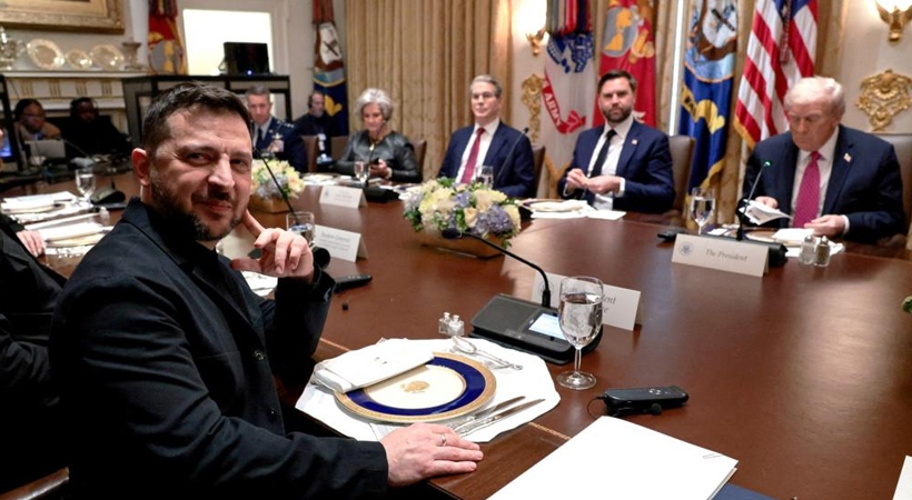 വെള്ളിയാഴ്ച വൈറ്റ് ഹൗസിലെത്തിയ സെലെന്സ്കി തന്റെ പതിവ് സൈനിക ഔപചാരിക വസ്ത്രങ്ങള്ക്കു പകരം കറുത്ത സ്യൂട്ടായിരുന്നു ധരിച്ചത്. കാബിനറ്റ് റൂമിലെ ഉച്ചഭക്ഷണത്തിനിടെയാണ് ട്രംപ് സെലെന്സ്കിയുടെ വസ്ത്രത്തെ പ്രശംസിച്ചത്. തമാശ രൂപത്തില്: ‘ഈ ജാക്കറ്റില് അദ്ദേഹം മനോഹരമായി കാണപ്പെടുന്നുവെന്ന് ഞാന് കരുതുന്നു, അതെ, മനോഹരം, ആളുകള് ശ്രദ്ധിക്കുമെന്ന് ഞാന് പ്രതീക്ഷിക്കുന്നു. ഇത് നല്ലതാണ്, ഇത് യഥാര്ത്ഥത്തില് വളരെ സ്റ്റൈലിഷ് ആണ്, എനിക്ക് ഇത് ഇഷ്ടമാണ്.’ -ട്രംപ് പറഞ്ഞു.