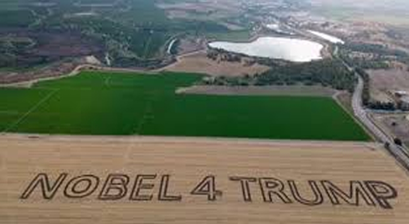 ഹമാസ് സമാധാന കരാറിൻറെ ആദ്യഘട്ടത്തിന് സമ്മതംമൂളിയതോടെ ശേഷിക്കുന്ന ഇസ്രയേൽ ബന്ദികൾ തിരികെ വരുമെന്ന ശുഭ പ്രതീക്ഷകളും പരന്നു. ഇതോടെ ഇസ്രായേലിലെ കർഷകർ ട്രംപിനുള്ള പിന്തുണ കാണിക്കുന്ന ഒരു വ്യത്യസ്തമായ വീഡിയോയുമായി രംഗത്തെത്തി. ട്രാക്ടറുകൾ ഉപയോഗിച്ച് ഒരു വലിയ വയലിൽ അവർ ട്രംപിനുവേണ്ടി ഒരു സന്ദേശം എഴുതി. “നൊബേൽ 4 ട്രംപ്” എന്നായിരുന്നു വീഡിയോയിലുള്ളത്.