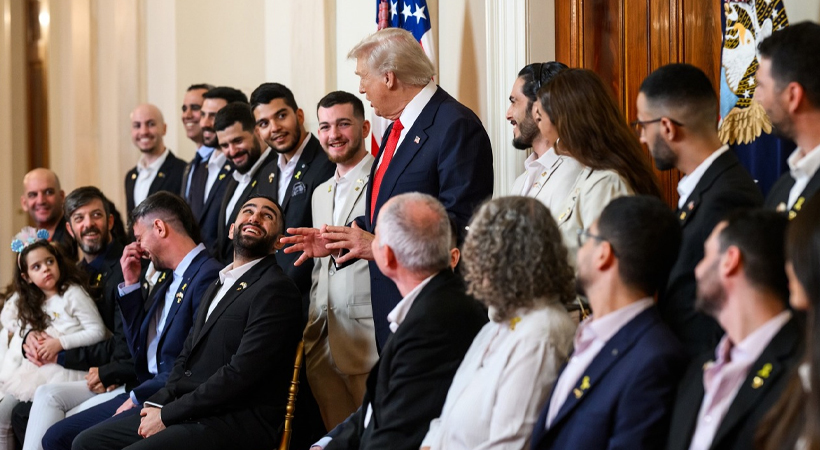 Trump welcomes freed Israeli hostages to the White House.