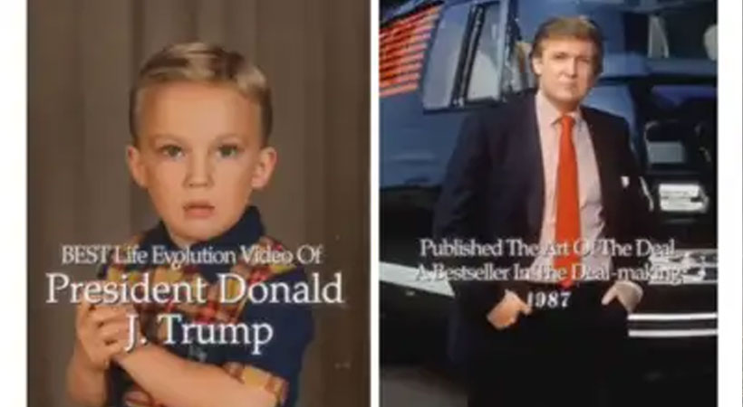 ‘പ്രസിഡന്റ് ഡോണാള്ഡ് ജെ ട്രംപിന്റെ ഏറ്റവും മികച്ച ജീവിത പരിണാമ വീഡിയോ’ എന്ന് പേരിട്ടിരിക്കുന്ന ദൃശ്യങ്ങളില് ട്രംപിന്റെ ബാല്യത്തില് നിന്ന് അദ്ദേഹത്തിന്റെ വിശാലമായ ബിസിനസ്, രാഷ്ട്രീയ ജീവിതത്തിലേക്കുള്ള പരിണാമത്തെ അവതരിപ്പിക്കുന്നു. 1959 മുതല് 1964 വരെയുള്ള ന്യൂയോര്ക്ക് മിലിട്ടറി അക്കാദമിയിലെ സമയം ഉള്പ്പെടെയുള്ള അദ്ദേഹത്തിന്റെ ആദ്യകാലങ്ങളില് നിന്നാണ് വീഡിയോ ആരംഭിക്കുന്നത്. ട്രംപ് ഓര്ഗനൈസേഷന്റെ ഏറ്റെടുക്കല്, അദ്ദേഹത്തിന്റെ ബിസിനസ്സ് സംരംഭങ്ങള്, എല്ലാറ്റിനുമൊടുവില് രാഷ്ട്രീയത്തിലേക്കുള്ള പ്രവേശനം എന്നിവയിലൂടെയാണ് വീഡിയോ സഞ്ചരിക്കുന്നത്. തന്റെ രാഷ്ട്രീയ ജീവിതത്തില് താന് ‘സമ്മര്ദ്ദത്തിനും ആക്രമണത്തിനും ഇരയായി’ എന്നും ഒരു കൊലപാതക ശ്രമത്തില് നിന്ന് രക്ഷപ്പെട്ടതായും ട്രംപ് പറയുന്ന നിമിഷങ്ങളും വീഡിയോയെ വൈകാരികമാക്കി.