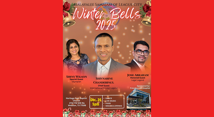 ടെക്സാസ്: ലീഗ് സിറ്റി മലയാളി സമാജത്തിന്റെ പത്താം വാർഷികത്തോടനുബന്ധിച്ച് വിന്റർ ബെൽസ് 2025 ക്രിസ്തുമസ് ന്യൂ ഇയർ ആഘോഷങ്ങളുടെ ഒരുക്കങ്ങൾക്ക് തുടക്കമായി.