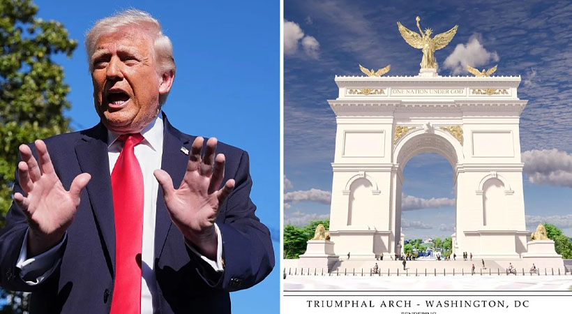 വാഷിങ്ടൺ ഡിസിയിൽ സ്വർണം പൂശിയ വിജയ കമാനം നിർമിക്കാനുള്ള തീരുമാനവുമായി വൈറ്റ് ഹൌസ് മുന്നോട്ട്. “ആർക്ക് ഡി ട്രംപ്” എന്ന് വിളിക്കപ്പെടുന്ന ഈ കമാനത്തിൽ ഒരു സ്വർണ്ണ ലേഡി ലിബർട്ടി പ്രതിമയും ഉണ്ട്.