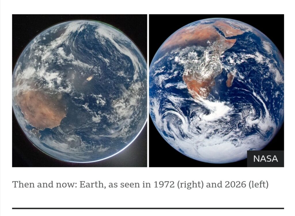 972-ലെ Apollo 17 ദൗത്യത്തിൽ എടുത്ത ചിത്രങ്ങളുമായി 2026-ലെ ചിത്രങ്ങൾ താരതമ്യം ചെയ്തും നാസ പങ്കുവെച്ചു.