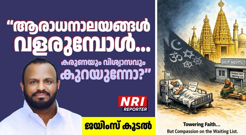 ഗ്രാമം തോറും കോടികൾ സമാഹരിച്ച് പുതിയ നിർമാണങ്ങൾ ഉയരുന്നു. മണികൂറ്റങ്ങൾ, അലങ്കാരങ്ങൾ, പ്രകാശഭംഗികൾ. വിശ്വാസത്തിന്റെ പേരിൽ, ഭക്തിയുടെ പേരിൽ, സമൂഹത്തിന്റെ അഭിമാനത്തിന്റെ പേരിൽ. ഭക്തി മനുഷ്യന്റെ ആത്മീയ യാത്രയുടെ ഭാഗമാണ്. അതിൽ സംശയമില്ല. പക്ഷേ ഒരു ചോദ്യം സമൂഹം ചോദിക്കാൻ മടിക്കുന്നു. ഈ ഭീമൻ നിർമ്മിതികൾ മനുഷ്യവേദന കുറയ്ക്കാൻ എന്താണ് ചെയ്യുന്നത്? ഒരു ഗ്രാമത്തിൽ പുതിയ ദേവാലയം ഉയരുമ്പോൾ അതേ ഗ്രാമത്തിൽ ഡയാലിസിസ് ചികിത്സ ലഭിക്കാതെ ബുദ്ധിമുട്ടുന്ന രോഗികളും ഉണ്ട്. അവസാനഘട്ട രോഗികളുമായി കഴിയുന്ന കുടുംബങ്ങൾക്ക് പാലിയേറ്റീവ് പരിചരണം ലഭിക്കാത്ത പ്രദേശങ്ങളും ഉണ്ട്. ഒറ്റപ്പെട്ട വയോധികർ അഭയം തേടി വലയുന്ന വീടുകളും ഉണ്ട്.