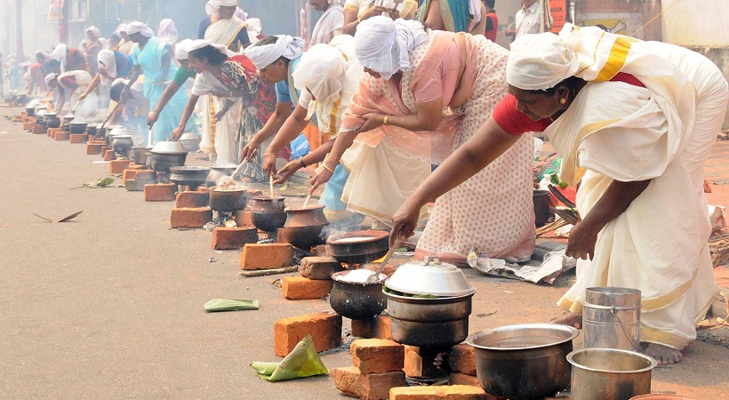 Attukal Pongala begins with fire being poured into the Pandara stove, Pongala pots have started boiling