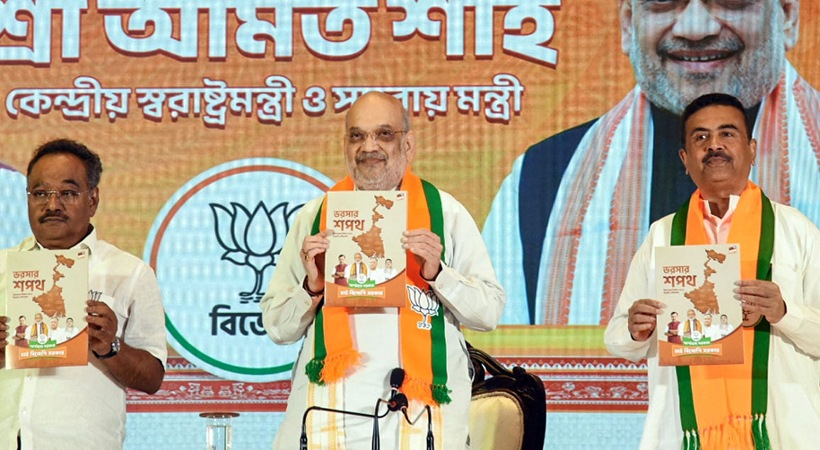 ബംഗാൾ നിയമസഭാ തിരഞ്ഞെടുപ്പിനുള്ള ബിജെപിയുടെ പ്രകടന പത്രിക കേന്ദ്ര ആഭ്യന്തരമന്ത്രി അമിത് ഷാ കൊൽക്കത്തയിൽ പുറത്തിറക്കി. സ്ത്രീകൾക്കും യുവാക്കൾക്കും വലിയ പ്രാധാന്യം നൽകുന്ന പത്രികയിൽ ‘അനധികൃത കുടിയേറ്റം തടഞ്ഞ് രാജ്യസുരക്ഷ ഉറപ്പാക്കും’ എന്നതാണ് പ്രധാന വാഗ്ദാനമായി ഉയർത്തിക്കാട്ടുന്നത്. സംസ്ഥാനത്ത് ഏകീകൃത സിവിൽ കോഡ് നടപ്പാക്കുമെന്നും കന്നുകാലി കടത്ത് തടയാൻ കർശന നിയമം കൊണ്ടുവരുമെന്നും ബിജെപി പ്രഖ്യാപിച്ചു.