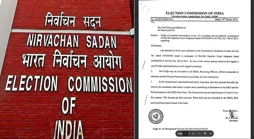 സ്ഥാനാർഥികളുടെ ക്രിമിനൽ പശ്ചാത്തലം സംബന്ധിച്ച് 2019-ൽ ബിജെപി തിരഞ്ഞെടുപ്പ് കമ്മീഷന് നൽകിയ കത്താണ് മാറി മെയിലിനൊപ്പം നൽകിയതെന്നും വിശദീകരണത്തിൽ മുഖ്യ തിരഞ്ഞെടുപ്പ് കമ്മീഷണർ വ്യക്തമാക്കിയിരുന്നു. എന്നാൽ, 2019 മാർച്ച് 19ന് തയ്യാറാക്കിയ കത്താണ് തിരഞ്ഞെടുപ്പ് കമ്മീഷൻ മെയിലിനൊപ്പം പാർട്ടികൾക്ക് അയച്ചത്. ഈ കത്തിൽ ആയിരുന്നു ബിജെപിയുടെ സീൽ പതിപ്പിച്ചിരുന്നത്.