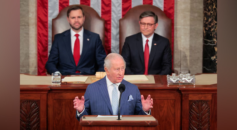 “തൻ്റെ മാതാവ് 35 വർഷങ്ങൾക്ക് മുമ്പ് ഇതേ സഭയിലെ സംയുക്ത യോഗത്തിൽ സംസാരിച്ച സമയത്തെക്കാൾ ‘കൂടുതൽ അസ്ഥിരവും അപകടകരവുമാണ്’ ഇന്നത്തെ ലോകമെന്ന് രാജാവ് വിശേഷിപ്പിച്ചു. ഇരു രാജ്യങ്ങളിലെയും ജനങ്ങളുടെ സുരക്ഷ ഉറപ്പാക്കാൻ അമേരിക്കയ്ക്ക് യുണൈറ്റഡ് കിംഗ്ഡത്തെപ്പോലൊരു സഖ്യകക്ഷി അത്യാവശ്യമാണെന്ന് അദ്ദേഹം വാദിച്ചു. ‘നമ്മൾ നേരിടുന്ന വെല്ലുവിളികൾ ഏതെങ്കിലും ഒരു രാജ്യത്തിന് തനിച്ച് താങ്ങാവുന്നതിലും വലുതാണ്,’ രാജാവ് പറഞ്ഞു. ‘എന്നാൽ പ്രവചനാതീതമായ ഈ സാഹചര്യത്തിൽ, നമ്മുടെ സഖ്യത്തിന് മുൻകാല നേട്ടങ്ങളിൽ മാത്രം അഭിരമിക്കാനോ അടിസ്ഥാന തത്വങ്ങൾ തനിയെ നിലനിൽക്കുമെന്ന് കരുതാനോ കഴിയില്ല. കഴിഞ്ഞ മാസം എൻ്റെ പ്രധാനമന്ത്രി പറഞ്ഞതുപോലെ, നമ്മുടേത് ഒഴിച്ചുകൂടാനാവാത്ത ഒരു പങ്കാളിത്തമാണ്. കഴിഞ്ഞ 80 വർഷമായി നമ്മെ നിലനിർത്തിയ എല്ലാ കാര്യങ്ങളെയും നാം അവഗണിക്കാൻ പാടില്ല. പകരം, അതിനെ കൂടുതൽ ശക്തിപ്പെടുത്തി മുന്നോട്ട് പോകണം,’ അദ്ദേഹം കൂട്ടിച്ചേർത്തു.”