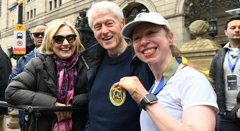 ഫിനിഷിംഗ് ലൈനിൽ മകളെ അഭിനന്ദിക്കാനായി ബിൽ ക്ലിൻ്റണും മുൻ സ്റ്റേറ്റ് സെക്രട്ടറി ഹിലരി ക്ലിൻ്റണും നേരിട്ടെത്തിയിരുന്നു. ഇവർക്കൊപ്പം 2014-ലെ ബോസ്റ്റൺ മാരത്തൺ ജേതാവും അമേരിക്കൻ ഇതിഹാസ താരവുമായ മെബ് കെഫ്ലെസിഗിയും ചെൽസിയെ സ്വീകരിക്കാൻ ഉണ്ടായിരുന്നു.