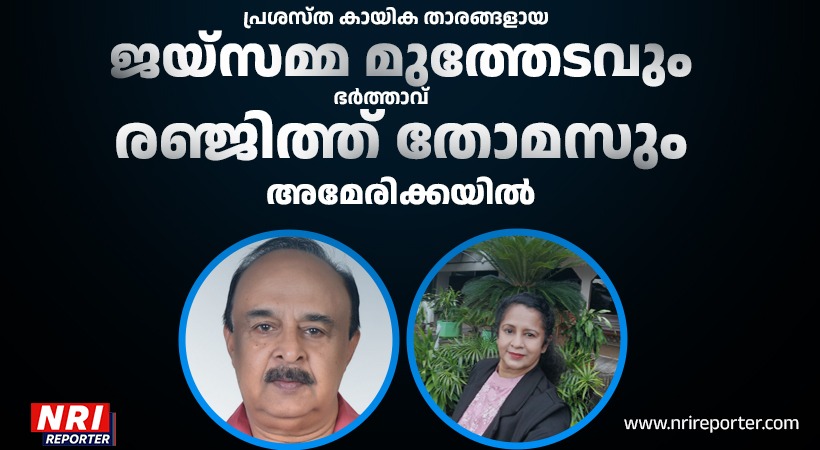 Famous sportspersons Jaysamma Moothedam and her husband Ranjith Thomas are in the United States.