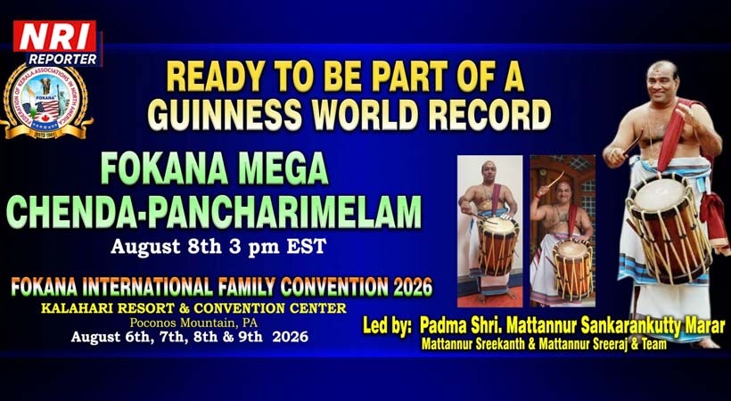 FOKANA 2026 Mattannur Sankarankutty to lead mega Panchari Melam for Guinness World Record attempt in USA