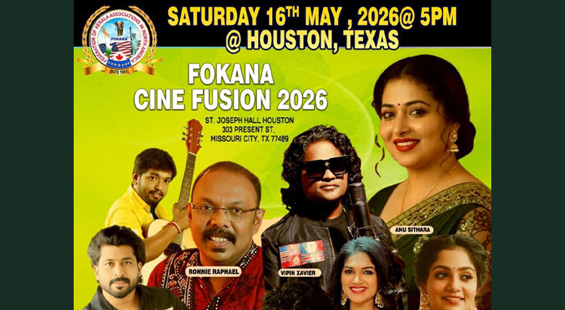 ഹ്യൂസ്റ്റണ് : ഫൊക്കാന അവതരിപ്പിക്കുന്ന സിനി ഫ്യൂഷന് യു എസ് എ 2026 ഷോയുടെ, ഏപ്രില് 6 നു നടന്ന കിക്ക് ഓഫ് ചടങ്ങ് ഹ്യുസ്റ്റണ് മലയാളികള്ക്ക് ആവേശമായി. പ്രമുഖ മലയാള സിനിമ സീരിയല് താരങ്ങളും, പിന്നണി ഗാന അവതരണ രംഗത്തെ പ്രമുഖരും അണി നിരക്കുന്ന ഷോ , 2026 മെയ് 16 ശനിയാഴ്ച്ച വൈകുന്നേരം 5 മണിക്ക് മിസ്സോറി സിറ്റിയിലുള്ള സെന്റ് ജോസഫ് ഹാളില് വെച്ച് നടത്തപ്പെടുന്നു. കിക്കോഫിനോട് അനുബന്ധിച്ചു അപ്പന ബസാര് ഹാളില് നടന്ന യോഗത്തില് ഫൊക്കാനയുടെ നിരവധി പ്രാദേശിക നേതാക്കള് പങ്കെടുത്തു .