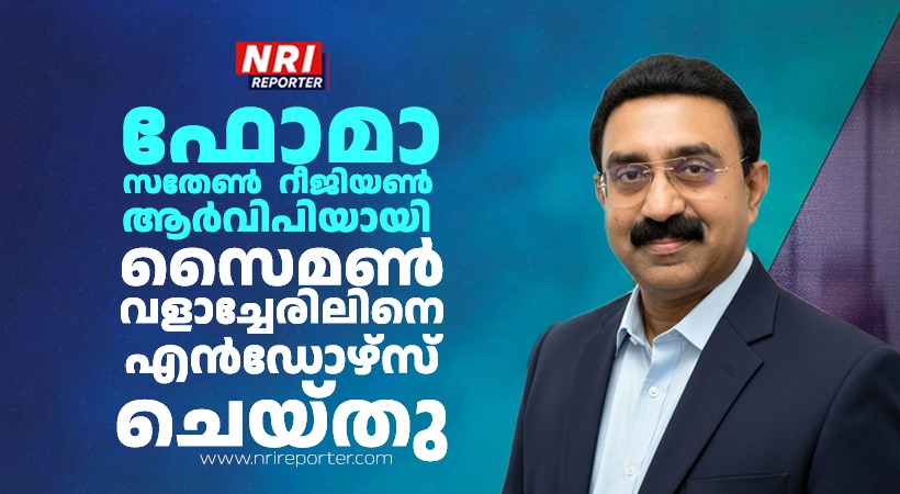 ഹൂസ്റ്റണ്: അമേരിക്കന് മലയാളികളുടെ ഏറ്റവും വലിയ ഫെഡറേഷനായ ഫോമായുടെ 2026-’28 കാലയളവിലേയ്ക്കുള്ള ഹൂസ്റ്റണ് സതേണ് റീജൻ വൈസ് പ്രസിഡന്റ് സ്ഥാനത്തേയ്ക്ക് പ്രമുഖ സംഘാടകനും മാധ്യമ പ്രവര്ത്തകനുമായ സൈമണ് വളാച്ചേരിലിനെ സതേണ് റീജിയണ് ഔദ്യോഗികമായി എന്ഡോഴ്സ് ചെയ്തു. അപ്നാ ബസാര് ഹോട്ടല് ഓഡിറ്റോറിയത്തില്, ഫോമാ നാഷണല് പ്രസിഡന്റ് ബേബി മണക്കുന്നേലിന്റെ സാന്നിധ്യത്തില് നടന്ന റീജിയണ് മീറ്റിങ്ങില്, നാഷണല് കണ്വന്ഷന്-2026 ജനറല് കണ്വീനര് ജോയി എന് സാമുവേല് സൈമണ് വാളച്ചേരിലിന്റെ പേര് നിര്ദേശിക്കുകയും തോമസ് ജോര്ജ് (സ്ഞ്ജു) പിന്താങ്ങുകയു ചെയ്തു.