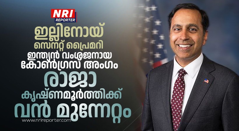 ഇല്ലിനോയ്: സെനറ്റിൽ നിന്നും വിരമിക്കുന്ന സെനറ്റർ ഡിക് ഡർബിന് പകരക്കാരനെ കണ്ടെത്താനുള്ള ഇല്ലിനോയ് ഡെമോക്രാറ്റിക് പ്രൈമറിയിൽ ഇന്ത്യൻ വംശജനായ കോൺഗ്രസ് അംഗം രാജാ കൃഷ്ണമൂർത്തിക്ക് വ്യക്തമായ മുന്നേറ്റമെന്ന് പുതിയ പോളിംഗ് ഫലങ്ങൾ. എമേഴ്സൺ കോളേജും ഡബ്ല്യു.ജി.എൻ ടിവിയും സംയുക്തമായി നടത്തിയ സർവേയിലാണ് അദ്ദേഹം തന്റെ എതിരാളികളെക്കാൾ ഏറെ മുന്നിലെത്തിയത്.