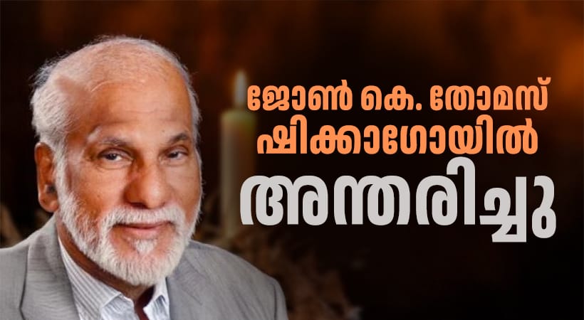 ഡെസ് പ്ലെയിൻസ് (ഷിക്കാഗോ): ഷിക്കാഗോ മാർത്തോമ്മാ ചർച്ചിലെ ഏരിയ 3 അംഗവും കുറ്റപ്പുഴ ജെറുസലേം മാർത്തോമ്മാ ഇടവകാംഗവുമായ കൊച്ചുപറമ്പിൽ ടി. ജോൺ (ജോൺ കെ. തോമസ് – തങ്കച്ചായൻ) ഷിക്കാഗോയിൽ അന്തരിച്ചു. 83 വയസായിരുന്നു. പരേതരായ കെ.പി. തോമസിന്റെയും സാറാമ്മ തോമസിന്റെയും മകനാണ്.