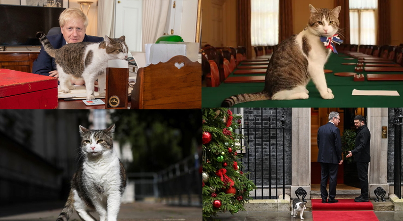 പ്രക്ഷുബ്ധമായ രാഷ്ട്രീയ സാഹചര്യങ്ങളിൽ പിടിച്ചുനിൽക്കാൻ ഇരുകാലികളായ മനുഷ്യർ നന്നേ ബുദ്ധിമുട്ടുമ്പോൾ, നാല് കാലുകളും മീശയുമുള്ള ഉറക്ക പ്രിയനുമായ ഒരാളാണ് ബ്രിട്ടീഷ് രാഷ്ട്രീയത്തിൽ സ്ഥിരതയുടെ അടയാളമാകുന്ന ലാറി. ബ്രിട്ടീഷ് ഭരണകൂടത്തിൻ്റെ ഔദ്യോഗിക എലിപിടുത്തക്കാരനായ ലാറി എന്ന പൂച്ചയെ പലർക്കും പരിചിതമായിരിക്കും. പത്താം നമ്പർ ഡൗണിംഗ് സ്ട്രീറ്റിൽ തൻ്റെ 15 വർഷത്തെ സേവനം പൂർത്തിയാക്കിയിരിക്കുകയാണ് ലാറി ഇപ്പോൾ. 2011 ഫെബ്രുവരി 15-ന് ഡേവിഡ് കാമറൂണിന്റെ കാലത്താണ് ലാറി ഇവിടെ എത്തിയത്.