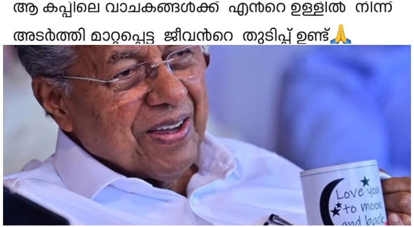 നേരത്തെ കേന്ദ്രസർക്കാരിന്റെ സാമ്പത്തിക അവഗണനയ്ക്കെതിരെ തിരുവനന്തപുരത്ത് നടന്ന സത്യഗ്രഹ വേദിയിൽ, അതിജീവിതയുടെ കുറിപ്പിലെ വരികൾ ആലേഖനം ചെയ്ത കപ്പുമായാണ് മുഖ്യമന്ത്രി എത്തിയത്. അതിജീവിത സോഷ്യൽ മീഡിയയിൽ പങ്കുവെച്ച ‘Love you to moon and back’ എന്ന വാക്കുകളായിരുന്നു മുഖ്യമന്ത്രി ഉപയോഗിച്ച ചായക്കോപ്പയിൽ ഉണ്ടായിരുന്നത്. ഈ ചിത്രം നിമിഷങ്ങൾക്കകം സോഷ്യൽ മീഡിയയിൽ വൈറലായി. രാഹുൽ മാങ്കൂട്ടത്തിലിന്റെ അറസ്റ്റിന് പിന്നാലെ അതീവ വൈകാരികമായ ഒരു കുറിപ്പാണ് അതിജീവിത ഫേസ്ബുക്കിൽ പങ്കുവെച്ചിരുന്നത്. “ദൈവത്തിന് നന്ദി, വേദനകൾക്കും വഞ്ചനകൾക്കും ഇടയിൽ ദൈവം എന്നെ അംഗീകരിച്ചു” എന്നായിരുന്നു യുവതിയുടെ പ്രതികരണം. ലോകം കേൾക്കാതെ പോയ നിലവിളികൾ ദൈവം കേട്ടുവെന്നും, മക്കളെ ബലം പ്രയോഗിച്ച് മാറ്റിയപ്പോഴും ദൈവം തുണയായെന്നും കുറിച്ച അതിജീവിത, ഇതേ കുറിപ്പിന്റെ അവസാനമാണ് ‘Love you to moon and back’ എന്ന വാചകം കുറിച്ചത്.