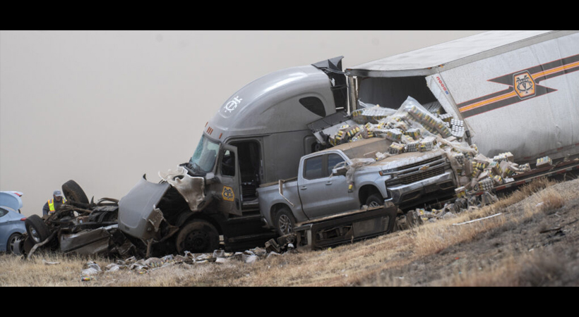 കൊളറാഡോയിലെ പ്യൂബ്ലോയ്ക്ക് സമീപം അന്തർസംസ്ഥാന പാത 25-ൽ ചൊവ്വാഴ്ചയാണ് അപകടമുണ്ടായത്. ആറ് സെമി ട്രക്കുകളും രണ്ട് ഡസനോളം പാസഞ്ചർ കാറുകളും ഉൾപ്പെടെ 30-ലധികം വാഹനങ്ങളാണ് അപകടത്തിൽപ്പെട്ടത്. അതിശക്തമായ കാറ്റിൽ മണ്ണ് പറന്ന് കാഴ്ചാപരിധി പാടെ കുറഞ്ഞതാണ് അപകടത്തിന് പ്രധാന കാരണമായത്. അപകടത്തിൽപ്പെട്ട ഒരു വാഹനത്തിലുണ്ടായിരുന്ന 32 ആടുകളിൽ നാലെണ്ണം ചത്തതായും റിപ്പോർട്ടുണ്ട്.