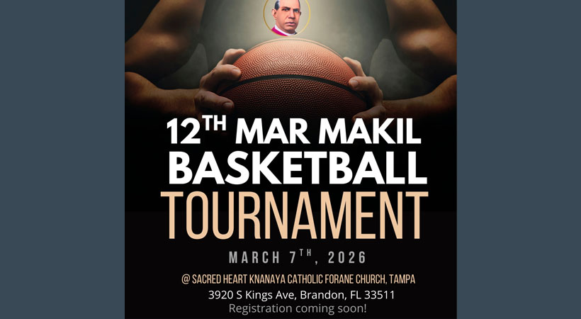 ടാമ്പ: സേക്രഡ് ഹാർട്ട് ക്നാനായ കത്തോലിക്കാ ദേവാലയത്തിൽ വച്ച് 2026 മാർച്ച് ഏഴാം തീയതി നടക്കുന്ന മാർ മാക്കീൽ മെമ്മോറിയൽ ബാസ്കറ്റ് ബോൾ ടൂർണമെന്റിന് വേണ്ടിയുള്ള ഒരുക്കങ്ങൾ അവസാന ഘട്ടത്തിലേക്ക് നീങ്ങുന്നു.