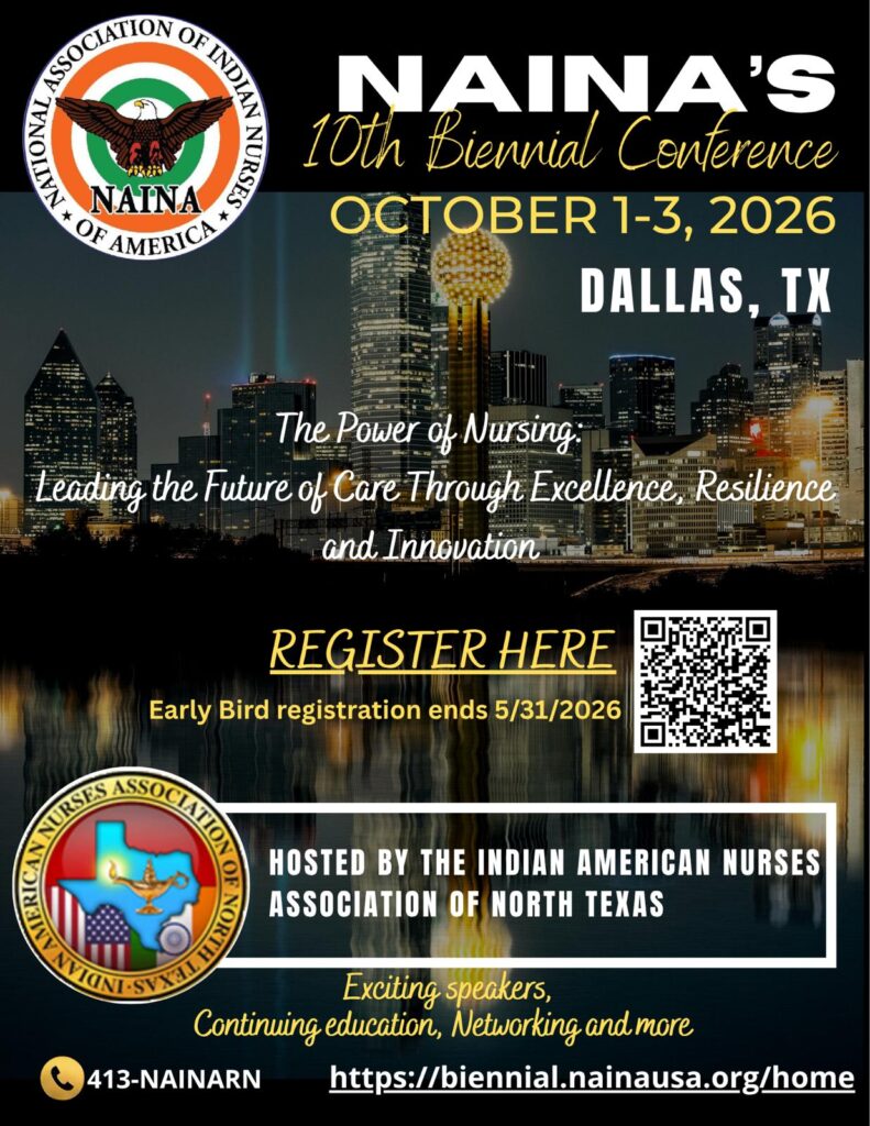 ഡാള്ളസ് : ഇന്ത്യൻ അമേരിക്കൻ നഴ്സസ് അസോസിയേഷൻ ഓഫ് നോർത്ത് ടെക്സസ് (IANANT) ആതിഥേയത്വം വഹിക്കുന്ന ദ്വിവാർഷിക സമ്മേളനം 2026, ഒക്ടോബർ 1 മുതൽ 3 വരെ ഫോർ പോയിന്റു ബൈ ഷെറാട്ടൺ, DFW എയർപോർട്ട് നോർത്ത്, കോപ്പേൽ ടെസ്സസിൽ വെച്ചു നടത്തുന്നു. “നഴ്സിംഗിന്റെ ശക്തി: മികവ്, പ്രതിരോധശേഷി, നവീകരണം എന്നിവയിലൂടെ ഭാവിയെ നയിക്കുക” എന്നത് ഒരു പ്രമേയമായി സമ്മേളനത്തിൽ അവതരിപ്പിക്കുന്നു. കൂടാതെ ഇന്ററാക്ടീവ് വർക്ക്ഷോപ്പുകളും നൈപുണ്യ വികസന സെഷനുകളും ക്രമീകരിച്ചുണ്ട്.