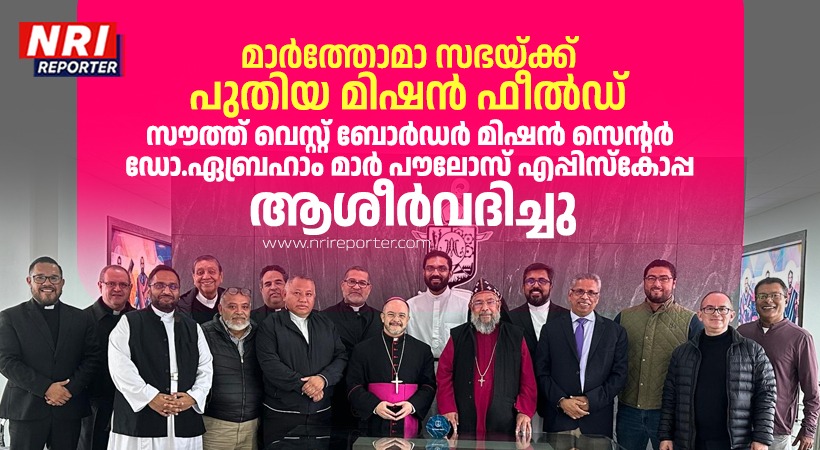 എഡിൻബർഗ്, ടെക്സസ് – മാർത്തോമാ സഭയുടെ നോർത്ത് അമേരിക്കൻ ഭദ്രാസനത്തിന്റെ മിഷൻ പ്രവർത്തനങ്ങളിൽ ഒരു സുപ്രധാന നാഴികക്കല്ലായി ഭദ്രാസന ബിഷപ്പ് അഭിവന്ദ്യ ഡോ. എബ്രഹാം മാർ പൗലോസ് എപ്പിസ്കോപ്പ തിരുമേനിയുടെ സൗത്ത്വെസ്റ്റ് ബോർഡർ മിഷനിലേക്കുള്ള പാസ്റ്ററൽ സന്ദർശനം. ഈ സന്ദർശനത്തിന്റെ ഭാഗമായി, ടെക്സസിലെ എഡിൻബർഗിലുള്ള 5411 യൂണിവേഴ്സിറ്റി അവന്യു എന്ന വിലാസത്തിൽ സ്ഥിതിചെയ്യുന്ന സൗത്ത്വെസ്റ്റ് ബോർഡർ മിഷൻ സെന്റർ സഭയുടെ മിഷൻ പ്രവർത്തനത്തിനായി അഭിവന്ദ്യ തിരുമേനി സമർപ്പിച്ചു.