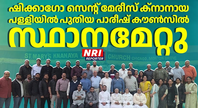 ഷിക്കാഗോ സെന്റ് മേരീസ് ക്നാനായ കത്തോലിക്കാ ദേവാലയത്തിൽ 2026-27 വർഷത്തേക്കുള്ള പുതിയ പാരീഷ് കൗൺസിൽ സ്ഥാനമേറ്റു. ഇതോടനുബന്ധിച്ചു സ്ഥാനമൊഴിയുന്ന 2024-25 വർഷത്തെ പാരീഷ് കൌൺസിൽ അംഗങ്ങളുടെയും 2026-27 വർഷത്തെ പാരീഷ് കൌൺസിൽ അംഗങ്ങളുടെയും ഒരു സംയുക്ത യോഗം ഫെബ്രുവരി മൂന്നാം തീയതി ചേരുകയുണ്ടായി.