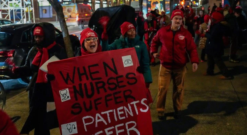 ന്യൂയോർക്ക്: ഈ മാസം 12 മുതൽ ന്യൂയോർക്ക് നഗരത്തിലെ പ്രധാന സ്വകാര്യ ആശുപത്രികളിലായി 15,000-ത്തോളം നഴ്സുമാരാണ് പണിമുടക്കിലേക്ക് കടന്നത്. ഇത് നഗരത്തിലെ ആരോഗ്യമേഖലയെ സാരമായി ബാധിച്ചിരിക്കുകയാണ്. ന്യൂയോർക്ക് സ്റ്റേറ്റ് നഴ്സസ് അസോസിയേഷന്റെ (NYSNA) നേതൃത്വത്തിൽ നടക്കുന്ന ഈ സമരം നഗര ചരിത്രത്തിലെ തന്നെ ഏറ്റവും വലിയ നഴ്സിംഗ് സമരങ്ങളിലൊന്നാണ്.