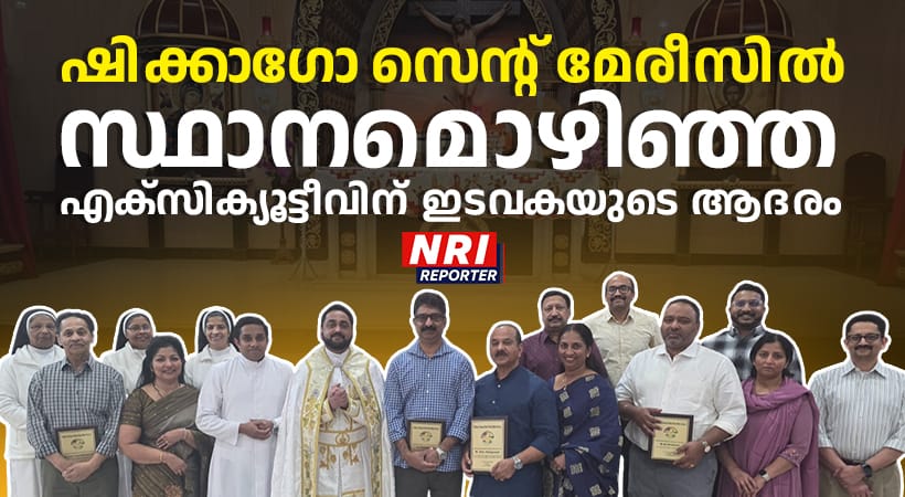 ഷിക്കാഗോ: മോർട്ടൺ ഗ്രോവ് സെൻ്റ് മേരീസ് ക്നാനായ കത്തോലിക്കാ ദേവാലയത്തിൽ സ്ഥാനമൊഴിഞ്ഞ എക്സിക്യൂട്ടീവിനെ ആദരിച്ചു. കഴിഞ്ഞ നാല് വർഷമായി ട്രസ്റ്റീ കോഓർഡിനേറ്റർ ആയി പ്രവർത്തിച്ചിരുന്ന സാബു കട്ടപ്പുറം, കഴിഞ്ഞ രണ്ടു വർഷമായി കൈക്കാരന്മാരായി സേവനം അനുഷ്ടിച്ചിരുന്ന ബിനു പൂത്തുറയിൽ, ജോർജ് മറ്റത്തിപ്പറമ്പിൽ, ലൂക്കോസ് പൂഴിക്കുന്നേൽ, നിബിൻ വെട്ടിക്കാട്ട് എന്നിവരെയും, പബ്ലിക് റിലേഷൻ ഓഫീസർ ആയി പ്രവർത്തിച്ചിരുന്ന അനിൽ മറ്റത്തിക്കുന്നേലിനെയും ആണ് ആദരിച്ചത്.