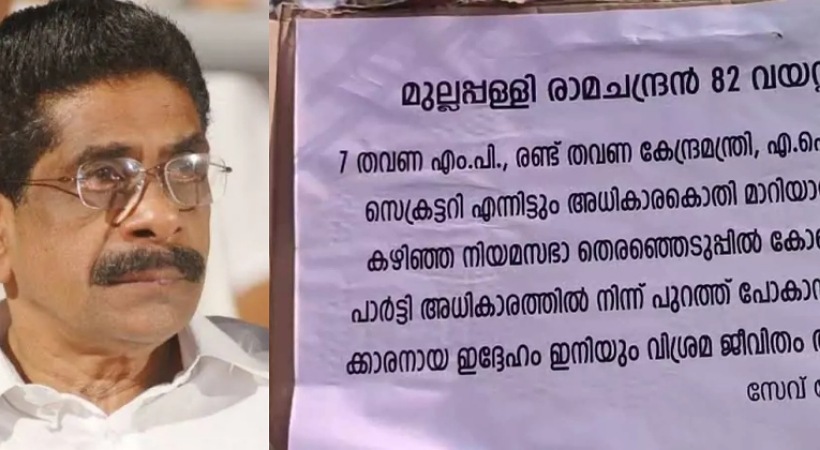 മുല്ലപ്പള്ളി രാമചന്ദ്രന് ഇനിയും അധികാരകൊതി മാറിയില്ലയെന്നാണ് വിമർശനം. രണ്ട് തവണ കേന്ദ്രമന്ത്രിയും ഏഴ് തവണ എംപിയുമായ 82കാരനായ മുല്ലപ്പള്ളി ഇനി വിശ്രമജീവിതം നയിക്കട്ടെയെന്നാണ് സേവ് കോണ്ഗ്രസിന്റെ പേരിലുള്ള പോസ്റ്ററിലുള്ളത്.അതേസമയം, മുതിര്ന്ന കോണ്ഗ്രസ് നേതാവ് വി.എം സുധീരന് നിയമസഭാ തെരഞ്ഞെടുപ്പില് ഇനി മത്സരിക്കാനില്ലെന്ന നിലപാടിന് യാതൊരു മാറ്റവുമില്ലെന്ന് ഫേസ്ബുക്കില് വ്യക്തമാക്കി. പാര്ലമെന്ററി രാഷ്ട്രീയരംഗത്ത് നിന്ന് വര്ഷങ്ങള്ക്ക് മുന്പേ വിടപറഞ്ഞതാണ്. നേതൃതലത്തില് നിന്ന് സമ്മര്ദങ്ങളുണ്ടായെങ്കിലും ആ നിലപാടിന് യാതൊരു മാറ്റവുമില്ലെന്നും സുധീരന് ഫേസ്ബുക്ക് പോസ്റ്റിൽ വ്യക്തമാക്കി.