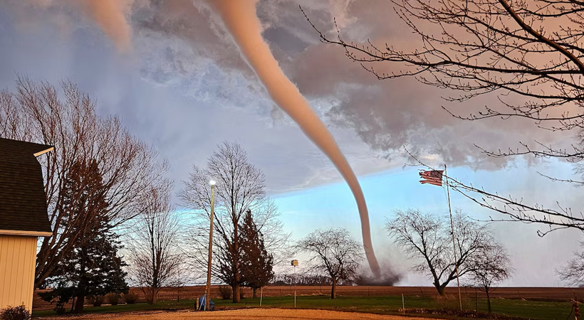 അയോവ, മിനസോട്ട, വിസ്കോൺസിൻ, ഇല്ലിനോയിസ് എന്നിവയുടെ ചില ഭാഗങ്ങളിൽ ചൊവ്വാഴ്ച രാത്രി 10 മണി വരെ ചുഴലിക്കാറ്റ് മുന്നറിയിപ്പ് പുറപ്പെടുവിച്ചിട്ടുണ്ട്. ഈ പ്രദേശങ്ങളിൽ വലിയ ആലിപ്പഴ വീഴ്ചയ്ക്കും നാശനഷ്ടങ്ങൾ വരുത്തുന്ന കാറ്റിനും സാധ്യതയുണ്ട്.