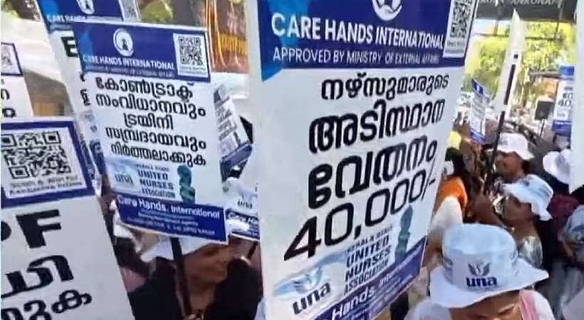 Private hospital nurses on strike demanding salary revision in Kerala