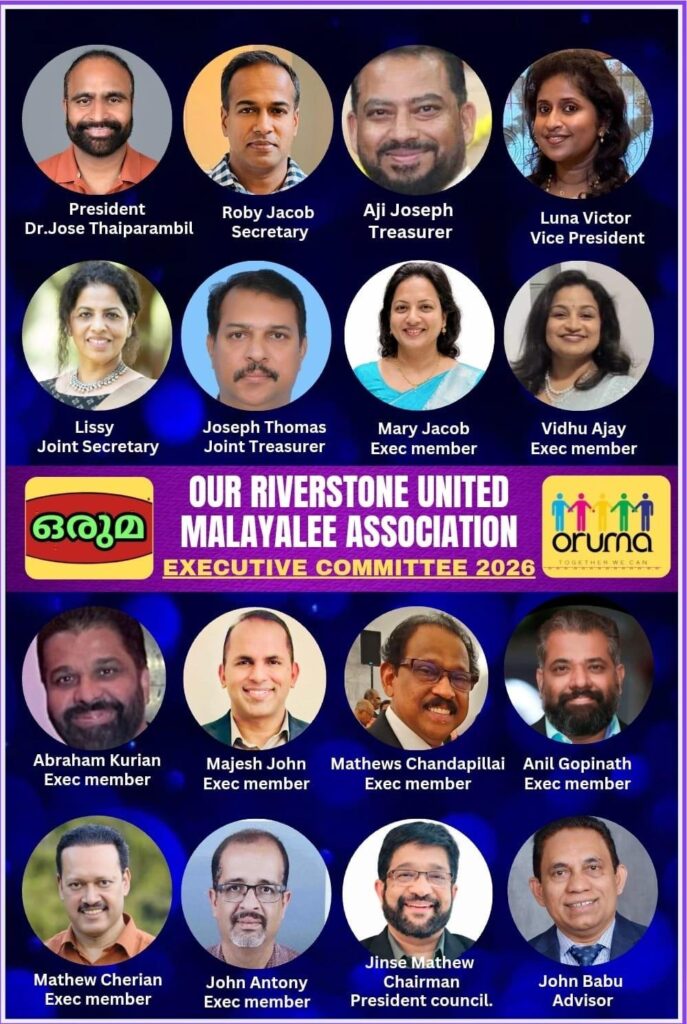 Riverstone Malayali Association Oruma’s leadership line-up for 2026 has been selected.
