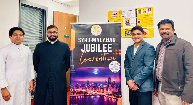 ഷിക്കാഗോ : രജതജൂബിലി ആഘോഷിക്കുന്ന സീറോ മലബാർ രൂപതയുടെ ജൂബിലി ആഘോഷങ്ങളുടെ ഭാഗമായി നടത്തപ്പെടുന്ന കൺവെൻഷന്റെ കിക്കോഫ് കൺവൻഷൻ ജോയിൻ്റ് കൺവീനർ ഫാ: യൂജിൻ ജോസഫിൻ്റെ നേതൃത്വത്തിൽ വെർജീനിയ സെൻറ് ജൂഡ് ദേവാലയത്തിൽ ഉത്സാഹപൂർവ്വം ജനുവരി പതിനൊന്നിന് നടന്നു. കൺവെൻഷന്റെ ഭാഗമായി ഇടവകകൾ സന്ദർശിക്കുന്നതിനും വിവരങ്ങൾ പങ്കുവയ്ക്കുന്നതിനും എത്തിച്ചേർന്ന ഫാ: യൂജിൻ ജോസഫിനെയും കൺവൻഷൻ രജിസ്ട്രേഷൻ കോർഡിനേറ്റർ ജേക്കബ് തോമസിനെയും ഇടവക വികാരി ഫാദർ ലിഗോറി ഫിലിപ്പ്സ് കട്ടിക്കാരൻ്റെ നേതൃത്വത്തിൽ ഇടവകാംഗങ്ങൾ ഹൃദ്യമായി സ്വീകരിച്ചു.