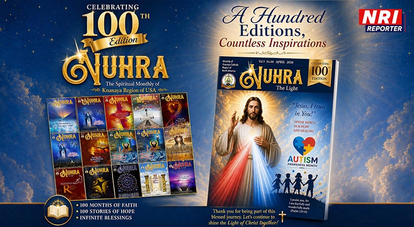 ചിക്കാഗോ: അമേരിക്കയിലെ ക്നാനായ കാത്തലിക് റീജിയന്റെ ആത്മീയ പ്രസിദ്ധീകരണമായ നുഹ്റ മാസികയുടെ നൂറാം പതിപ്പ് പ്രകാശനം ചെയ്തു. ക്നാനായ ജനതയുടെ ആത്മീയ ഉണർവിനായി 2018 ജനുവരി മാസം മുതലാണ് നുഹറ പ്രസിദ്ധീകരണം ആരംഭിച്ചത്. നൂഹ്റ എന്ന സുറിയാനി പദത്തിന്റെ അർത്ഥം പ്രകാശം എന്നാണ്. ക്രിസ്തുവാകുന്ന പ്രകാശത്തെയാണിത് സൂചിപ്പിക്കുന്നത്.