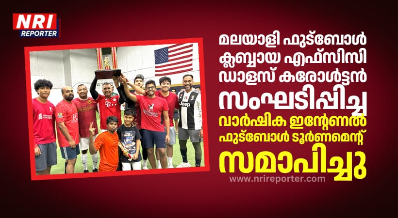 കരോൾട്ടൻ / ടെക്സാസ് : ഡാളസിലെ പ്രമുഖ മലയാളി ഫുട്ബോൾ ക്ലബ്ബായ എഫ്.സി.സി ഡാളസ്, കരോൾട്ടൻ (FCC Dallas) സംഘടിപ്പിച്ച വാർഷിക ഇന്റേണൽ ഫുട്ബോൾ ടൂർണമെന്റ് ആവേശകരമായി സമാപിച്ചു. ക്ലബ് അംഗങ്ങൾക്കിടയിൽ സൗഹൃദവും, കായികക്ഷമതയും ഒപ്പം പുതിയ കായിക പ്രതിഭകളെ പ്രോത്സാഹിപ്പിക്കുകയും ചെയ്യുക എന്ന ലക്ഷ്യത്തോടെ സംഘടിപ്പിച്ച ടൂർണമെന്റിൽ മികച്ച പ്രകടനമാണ് താരങ്ങൾ കാഴ്ചവെച്ചത്.