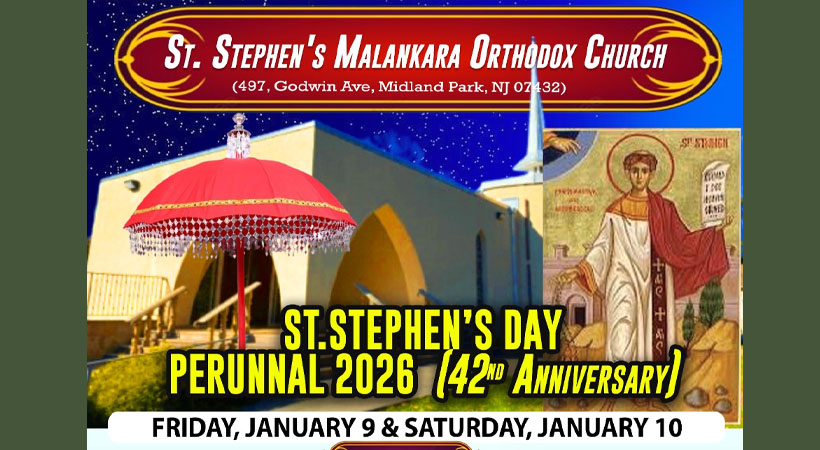 ന്യൂജേഴ്സി : മിഡ് ലാൻഡ് പാർക്ക് സെന്റ് സ്റ്റീഫൻസ് ഓർത്തഡോൿസ് ദേവാലയത്തിൽ വിശുദ്ധ സ്തെപ്പാനോസ് സഹദായുടെ തിരുനാൾ ആഘോഷങ്ങൾക്ക് ഇന്ന് തുടക്കം കുറിക്കും