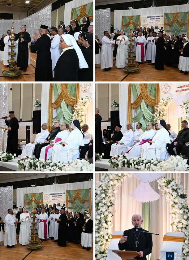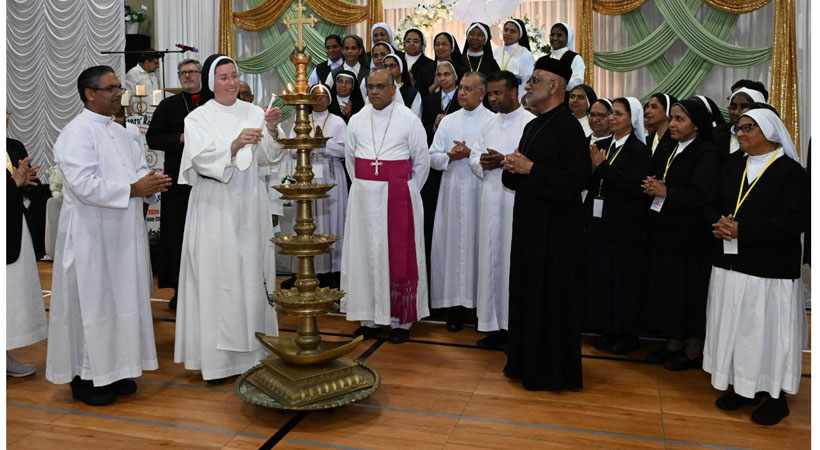 ഷിക്കാഗോ: സെൻ്റ് തോമസ് സിറോ മലബാർ രൂപതാ സ്ഥാപനത്തിൻ്റെയും അഭിവന്ദ്യ ജേക്കബ് അങ്ങാടിയത്ത് പിതാവിന്റെ മെത്രാഭിഷേകത്തിൻ്റെയും രജത ജൂബിലിയുടെ ഭാഗമായി അമേരിക്കയിലും കാനഡയിലും ശുശ്രൂഷ ചെയ്യുന്ന എല്ലാ മലയാളി സിസ്റ്റേഴ്സിന്റെയും സംഗമം ഷിക്കാഗോ ബെൻസെൻവിൽ സേക്രഡ് ഹാർട്ട് ക്നാനായ കത്തോലിക്കാ ദേവാലയത്തിൽ തുടക്കമായി. ഇതോടനുബന്ധിച്ച പൊതുസമ്മേളനം നിരവധി വൈദിക മേലധ്യക്ഷന്മാരുടെയും 28-ൽ പരം സന്യാസിനി സമൂഹങ്ങളുടെ പ്രതിനിധികളുടെയും സാന്നിധ്യത്തിൽ അമേരിക്കയിലെ റിതുവേനീയൻ -ബൈസൻ്റെൻ കത്തോലിക്കാ രൂപതയുടെ ബിഷപ്പ് റോബർട്ട് പിപ്റ്റ ഉദ്ഘാടനം ചെയ്തു.
