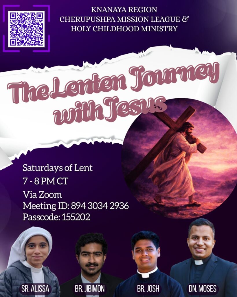 “The Lenten Journey with Jesus” is a program organized for children during Lent in the Knanaya Region of the United States. organized by Cherupushpa Mission League and Holy Childhood Ministry of the Knanaya Region.