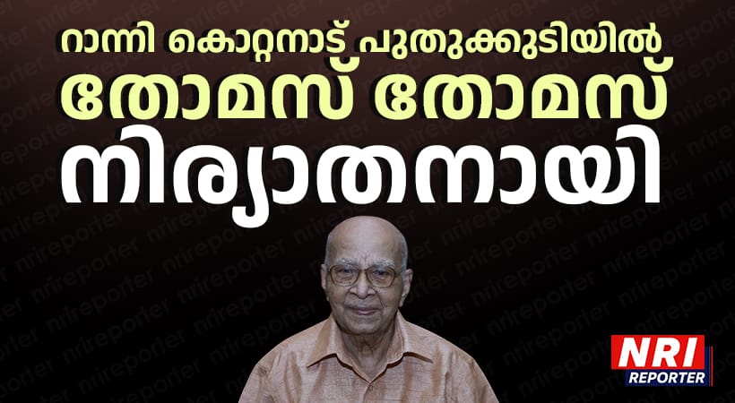 ഹൂസ്റ്റൺ: റാന്നി കൊറ്റനാട് പുതുക്കുടിയിൽ തോമസ് തോമസ് ( ജോർജ്, 101 വയസ്സ് ) നിര്യാതനായി. സംസ്കാരം ഫെബ്രുവരി 21 നു ശനിയാഴ്ച 12.30 നു കണ്ടൻപേരൂർ സെന്റ് പോൾസ് മാർത്തോമാ ദേവാലയത്തിൽ നടക്കും. അയിരൂർ അയ്യക്കാവിൽ കുടുംബാംഗമാണ്. ഭാര്യ കല്ലൂപ്പാറ മേലേക്കൂറ്റ് പരേതയായ ഏലിയാമ്മ.