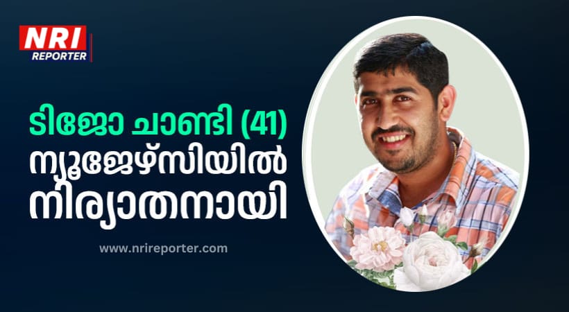 ന്യൂജേഴ്സി: ഇടുക്കി നരിയൻപാറ കണ്ടത്തിങ്കൽ പരേതനായ കെ സി ചാണ്ടിയുടെയും കുഞ്ഞൂഞ്ഞമ്മയുടെയും ഇളയ മകനായ ടിജോ ചാണ്ടി (41) ന്യൂജേഴ്സിയിൽ നിര്യാതനായി. ഭാര്യ: മേബിൾ ചാക്കോ, മക്കൾ: ഐറിൻ, ടിയ. സഹോദരങ്ങൾ: ടിഷ, സൂസൻ.
